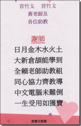 •蔡慧兒同學學以致用,精心製作電腦感謝